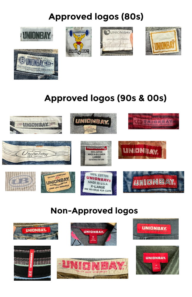 UNIONBAY items from the 80s, 90s and 00s are eligible for vintage resale. The best method to identify whether your item is from one of these decades is by inspecting the brand tag on your item. Here are images of eligible and non-eligible vintage brand tags.
